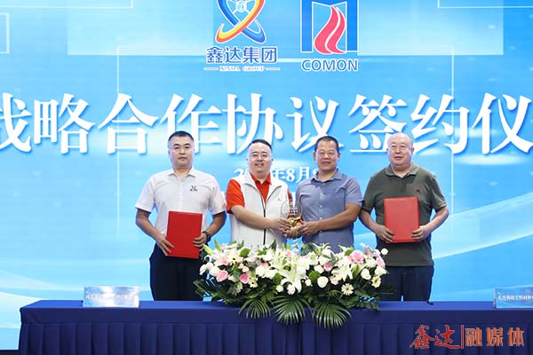 在河北鑫達鋼鐵集團有限公司董事長王松偉、大連科萌工程材料有限公司董事長高成軍的見證下,河北鑫達鋼鐵集團有限公司領(lǐng)導賈占軍、大連科萌工程材料有限公司總經(jīng)理孫榮國代表雙方簽訂戰(zhàn)略合作協(xié)議。
