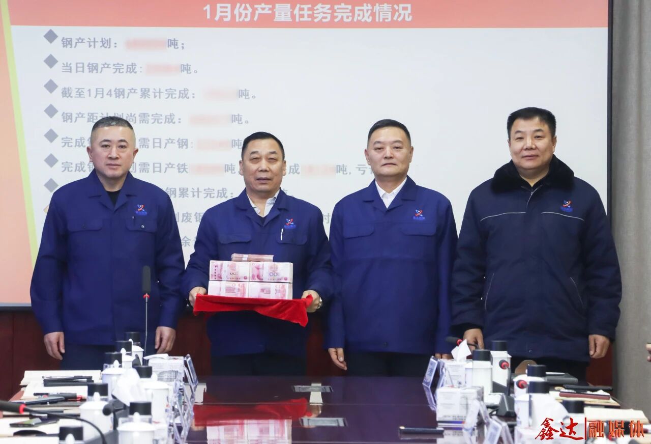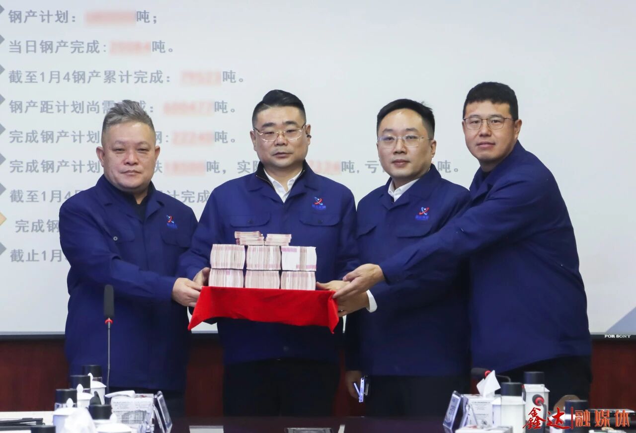 2026年1月5日,河北鑫達鋼鐵集團有限公司召開“沖刺1月份·奮戰(zhàn)開門紅”誓師大會,總結工作,分析形勢,部署任務,頒發(fā)董事長特別獎,動員全體干部職工堅持產(chǎn)供銷協(xié)同聯(lián)動,咬定產(chǎn)量任務、聚焦效益目標,確保實現(xiàn)2026年首季“開門紅”。