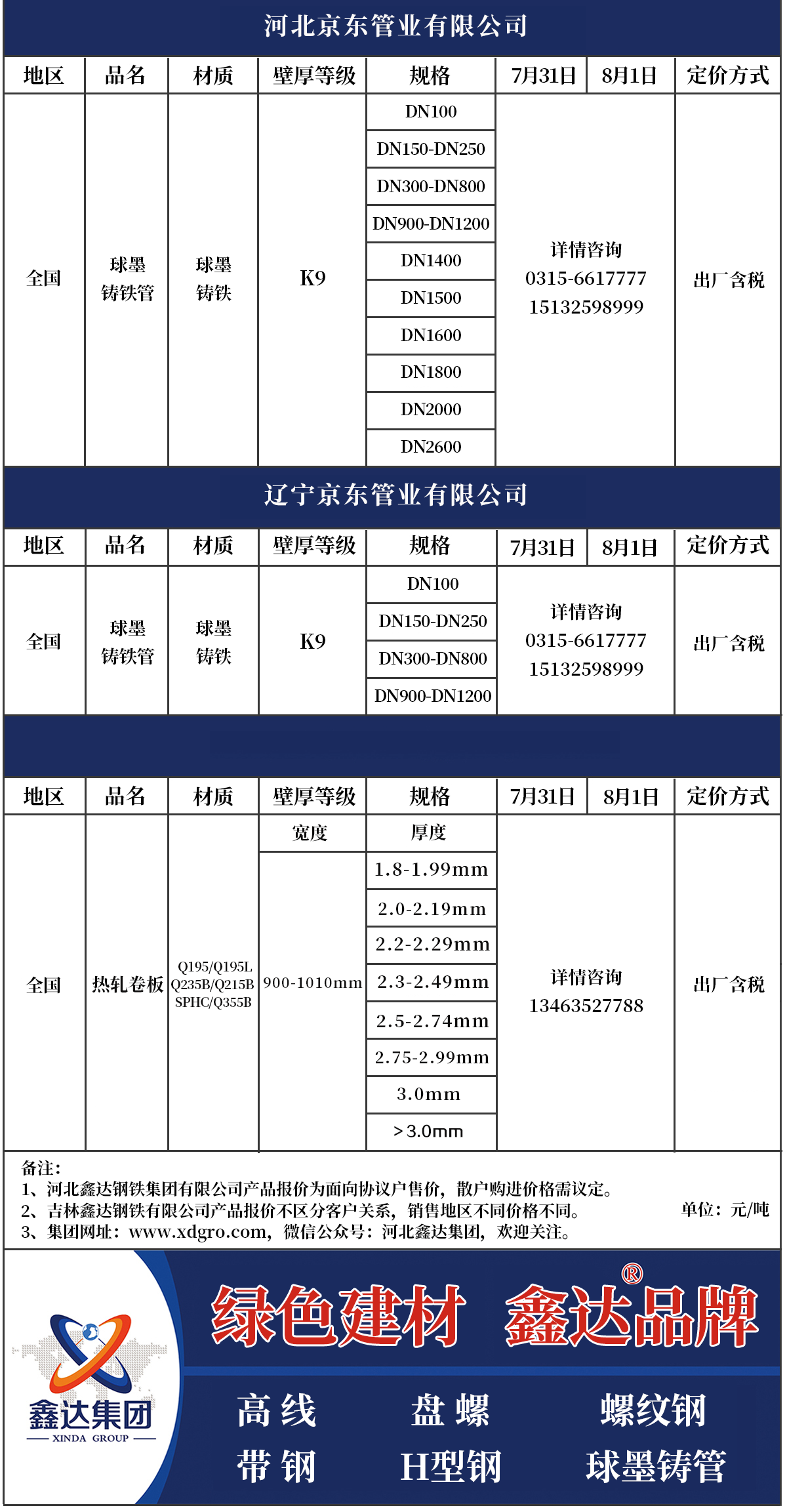 8月1日產(chǎn)品報(bào)價(jià)